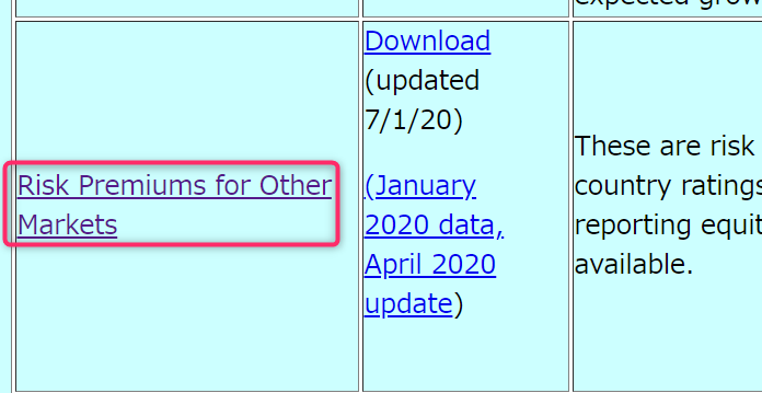 ステップ3:「Risk Premiums for Other Markets」を押下(Downloadを押すとExcel形式でDownloadできます)