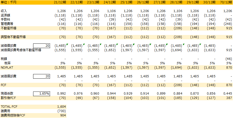 この部分については、現価係数を使用してモデルに適切に反映させる必要があります。