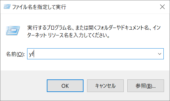 「Windows + R」押下後に「yf」を入力して実行すると、、、