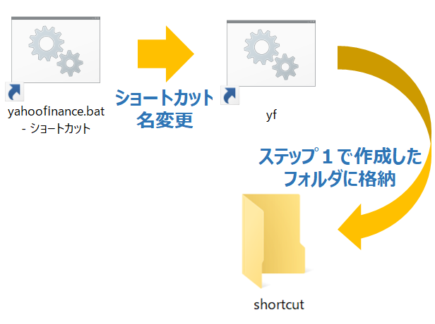 フォルダ名は好きな名前で構いません。解説に際しては「shortcut」をフォルダ名として使用します。